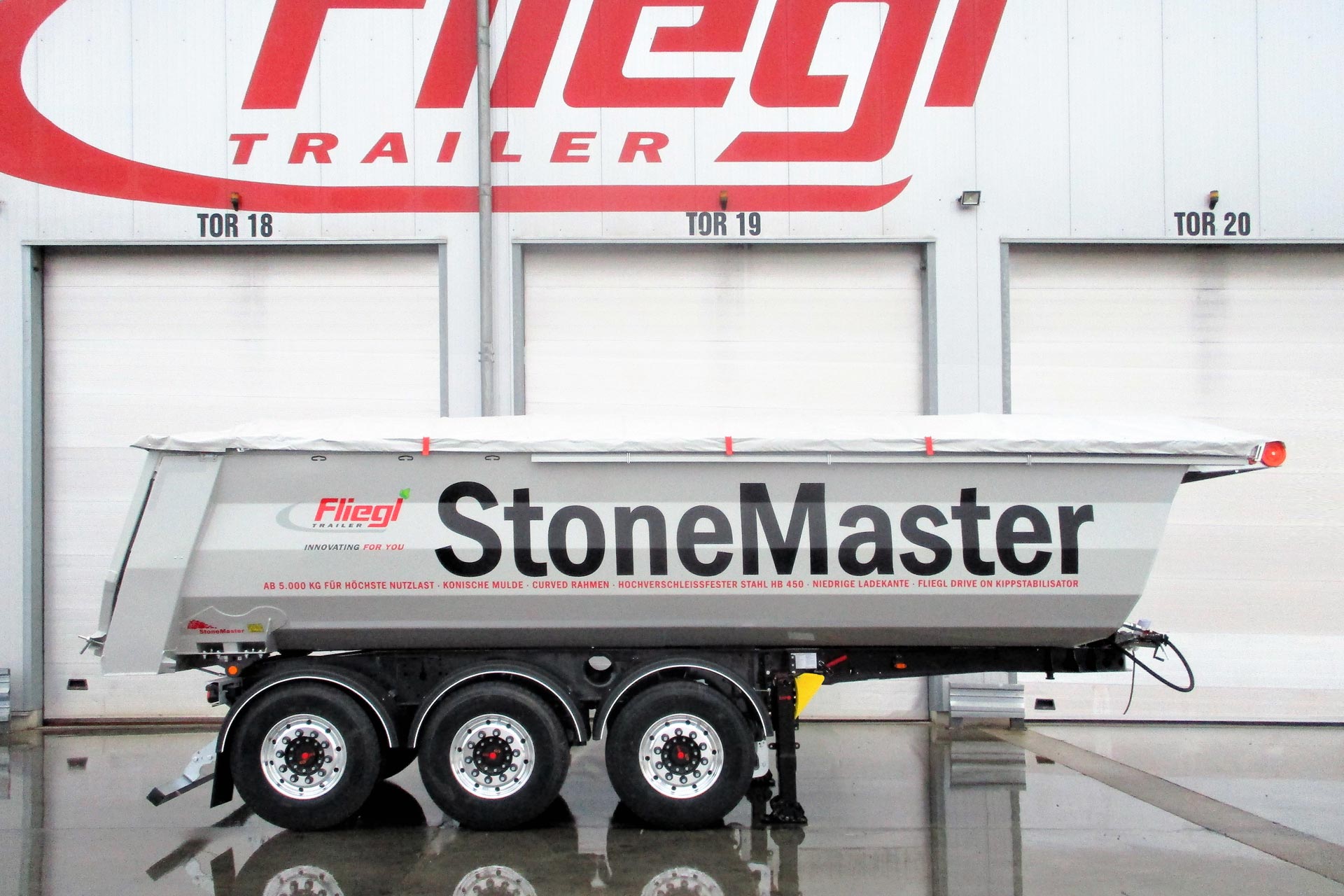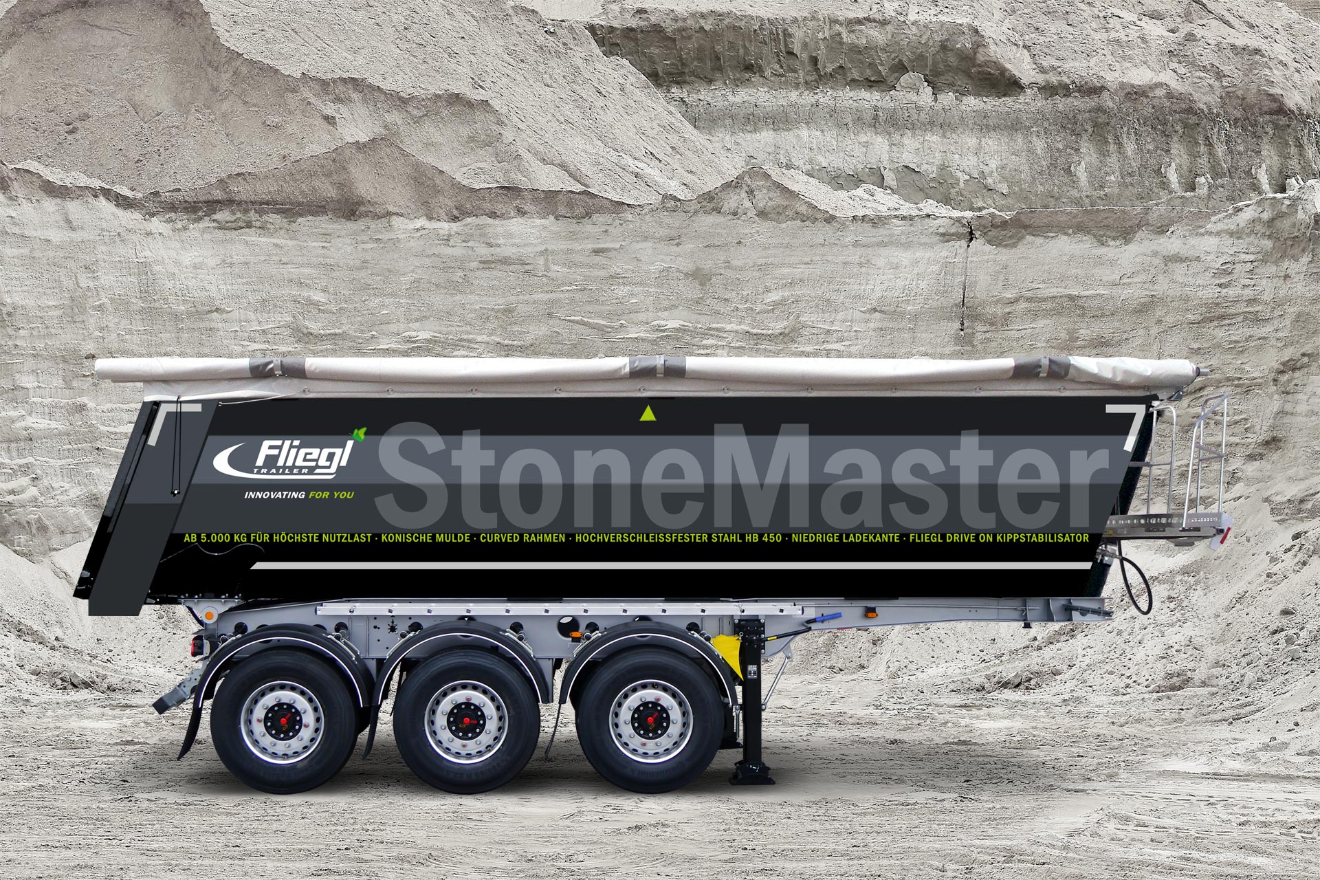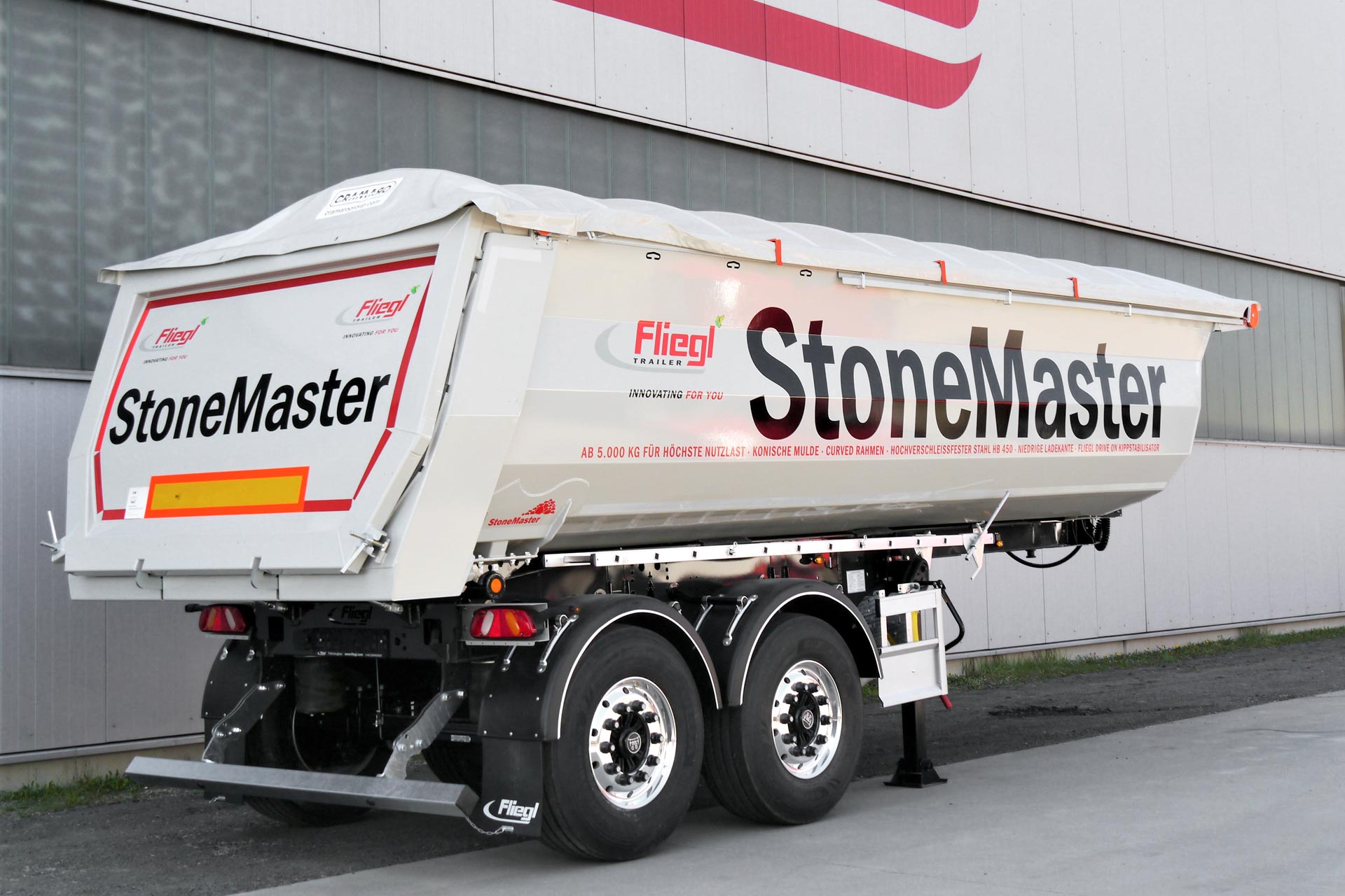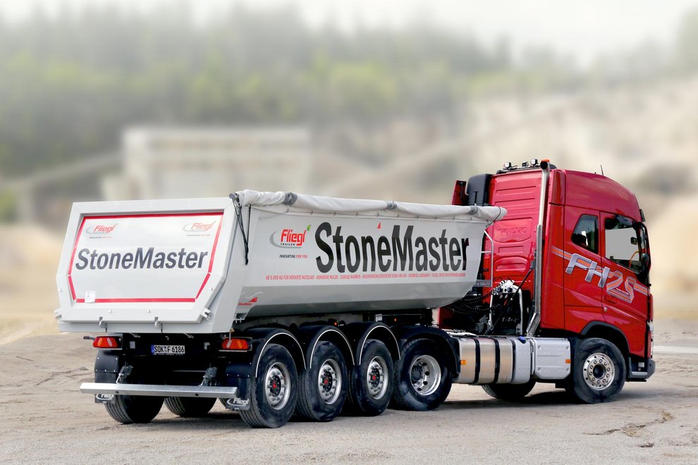 Важка місцевість, короткі дистанції, сильний стрес. Саме для цього Fliegl будує свій « Stone Master ». Цей причіп-самоскид зі сталевим кузовом забезпечує високу вантажопідйомність і призначений в основному для експлуатації на будівельних майданчиках.